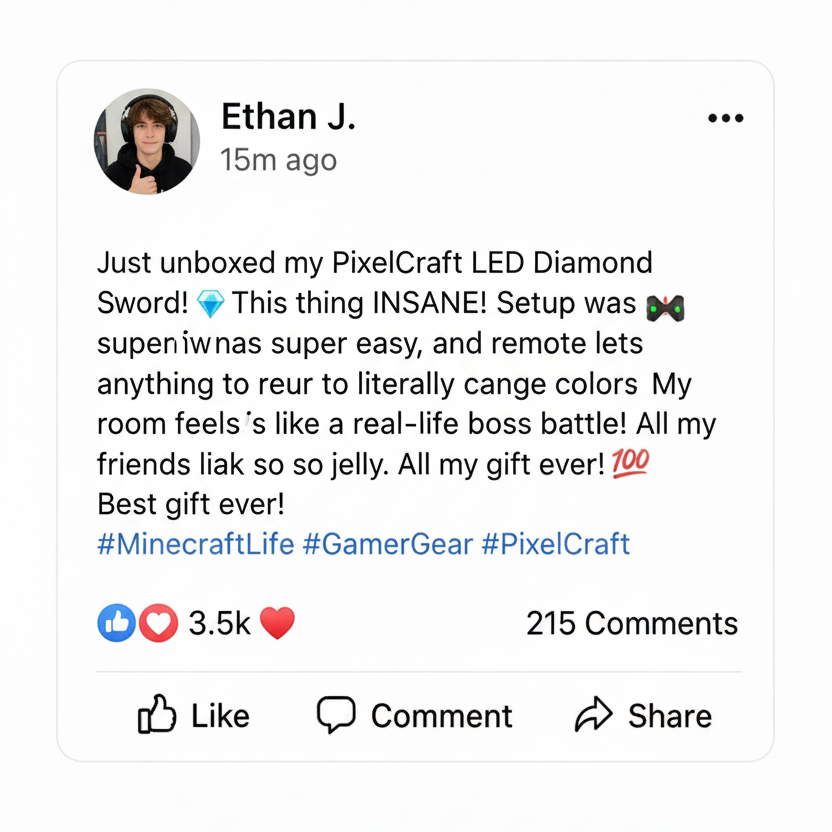 At PixelCraft, we don't just sell lights, we bring the world of Minecraft to life! Our RGB LED Sword stands out from the crowd because it's brighter, rechargeable, and made with high-quality materials.